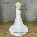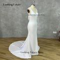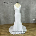 Sexy Mermaid Wedding Dress V-Neck Open Back Boho Wedding Gown Simple Plain Long Train Buttons Beach Bridal Dress Robe De Mariee