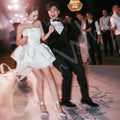 Short Mini Princess Wedding Dresses Satin Srtrapless Bridal Ball Gowns Detachable Lantern Sleeves Bride Robes Vestidos De Novia