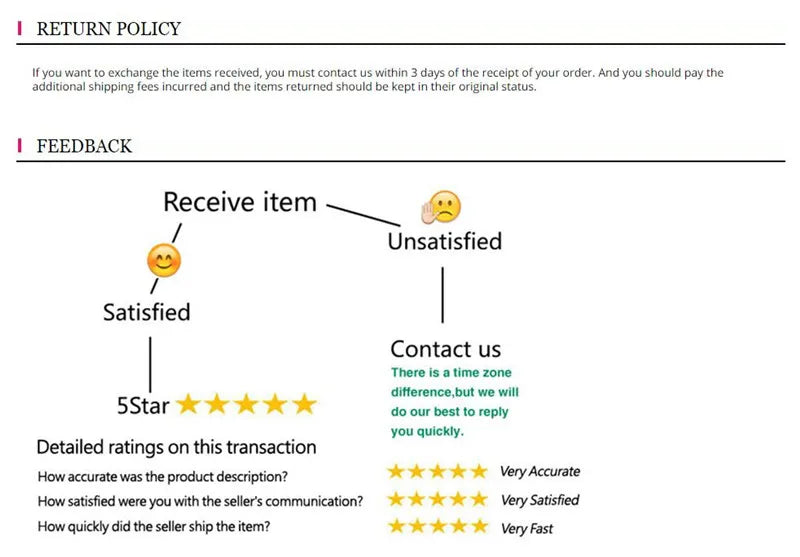 - All returned products will be fully refunded as long as they have not been used or damaged.
