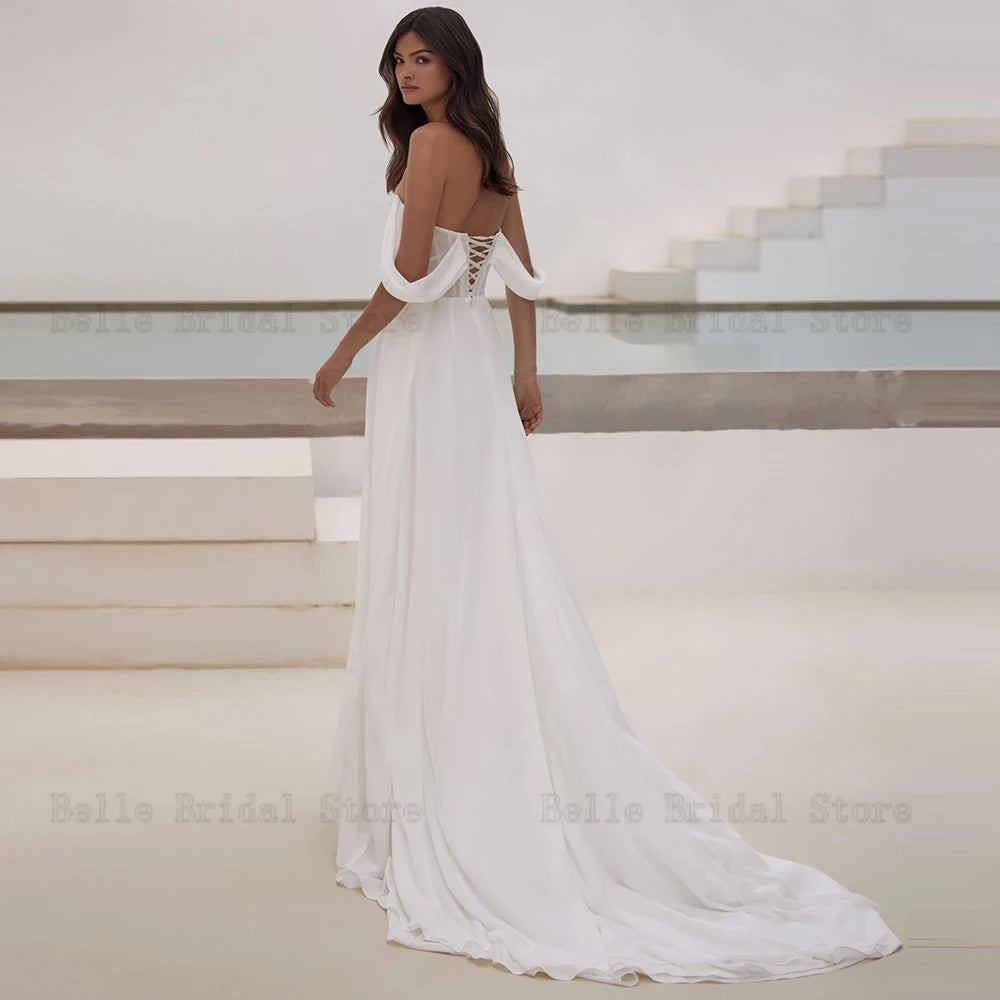Simple Chiffon Wedding Dresses Strapiess Sleeveless Bridal Growns with Side Split Vestidos Floor Length De Novia Backless 2024
