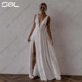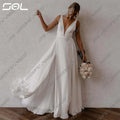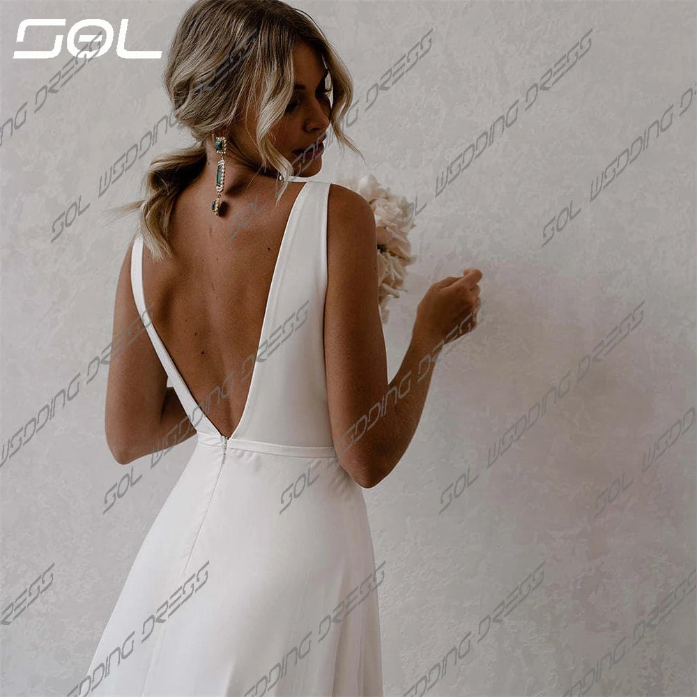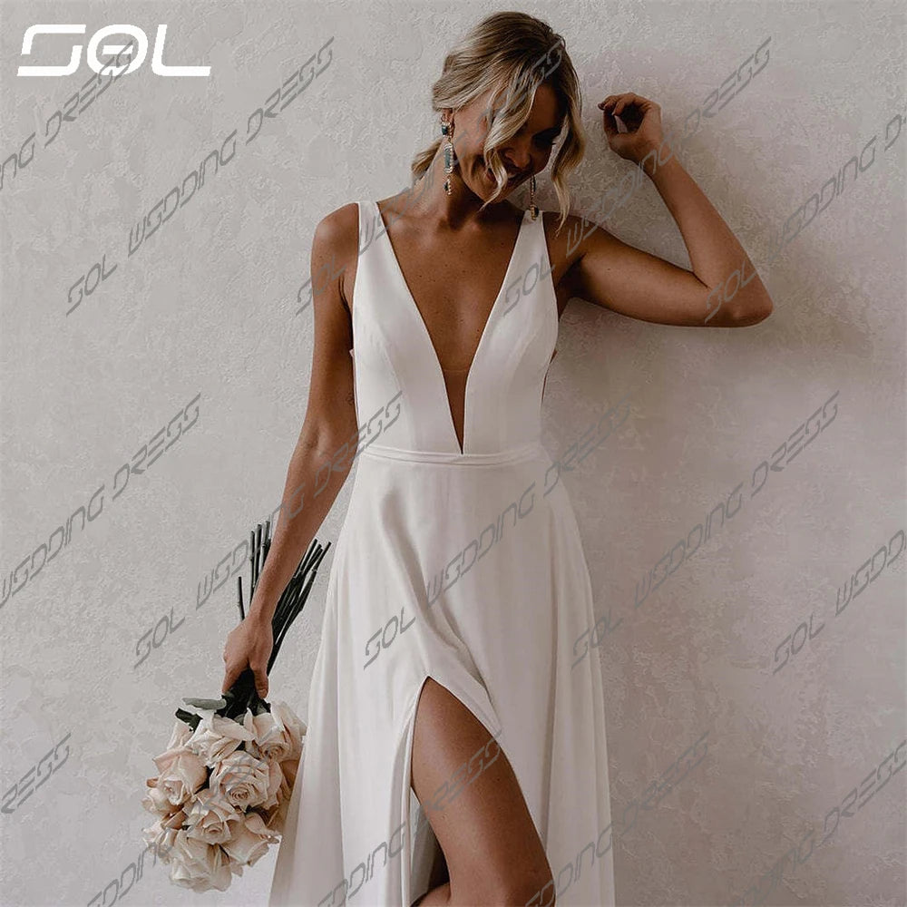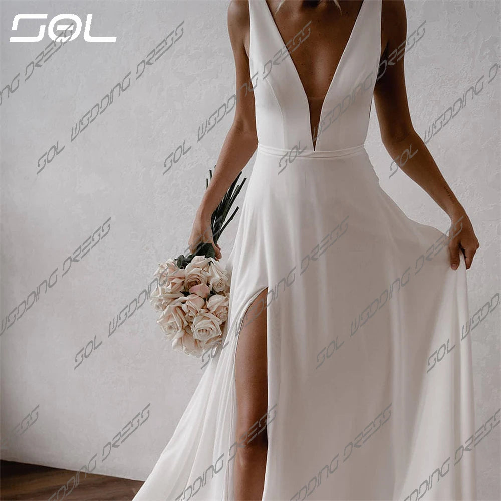 SOL Simple Deep V Neck Spaghetti Straps Side Slit Chiffon Wedding Dresses Elegant Backless A-Line Bridal Gowns Vestidos De Novia