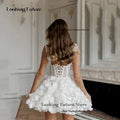 Sweet Tulle Mini Ball Gown Wedding Dress Sext Appliques Spaghetti Straps Backless Lace up Pleat Lace Sleeveless Bride Gown 2024