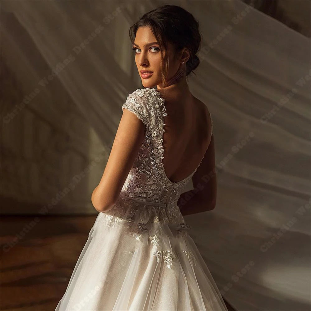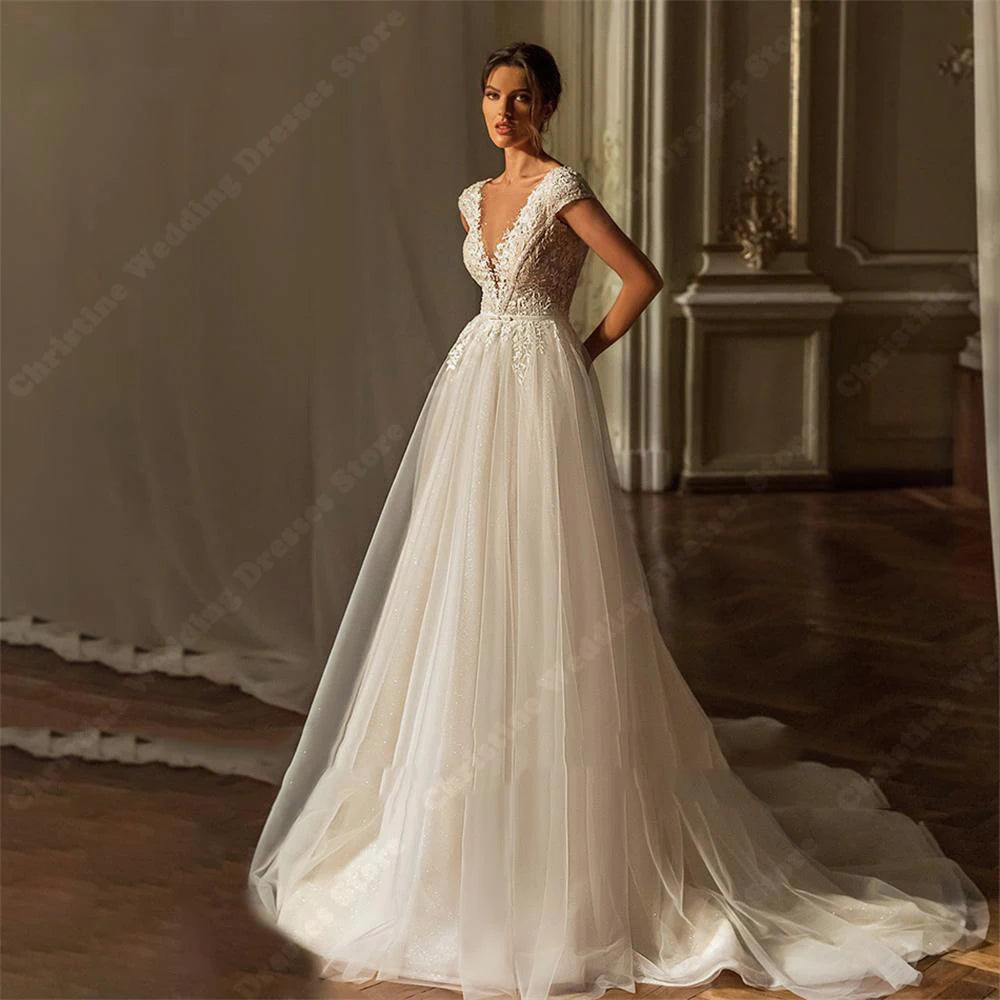 Sweet V-Neck Long Sleeves Wedding Dresses Lace Appliques Puff Princess Hems Custom Made Robes New Lace Applique Vestido De Novia