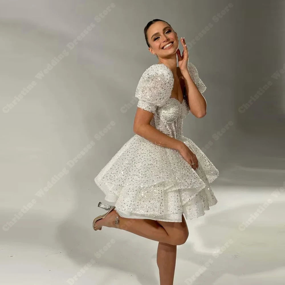 Sweetheart Collar Shiny Sequin Women Wedding Dresses Celebrity Wedding Custom Made Bridal Gowns Mopping Length Vestidos De Novia