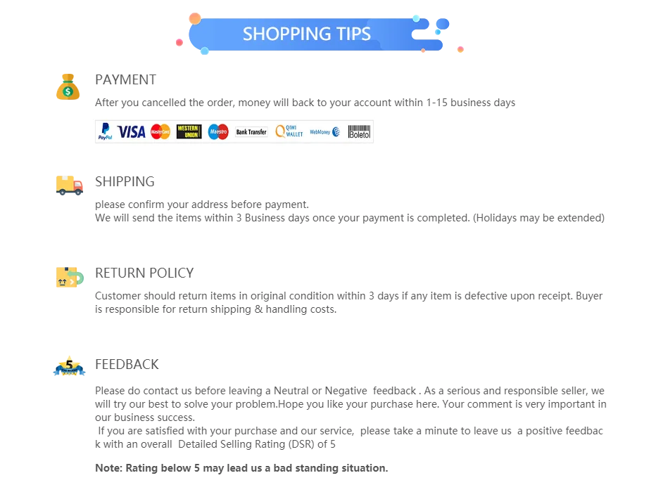 - All returned products will be fully refunded as long as they have not been used or damaged.