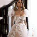 UZN Chic Champagne Princess Lace and Tulle Modern Wedding Dresses Sweetheart Long Puffy Sleeves Glitter Bride Gowns Plus Size Wedding Gowns