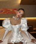 Verngo Short Mermaid Wedding Dresses Women Long Sleeves Pleated Above Knee Civil Simple Satin Bridals Gowns vestidos novia 2024
