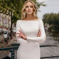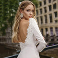 Vestido De Noiva Mermaid Wedding Dresses Long Sleeves Sexy Backless With Lace Appliqued Satin Bridal Gowns Buttons Sweep Train