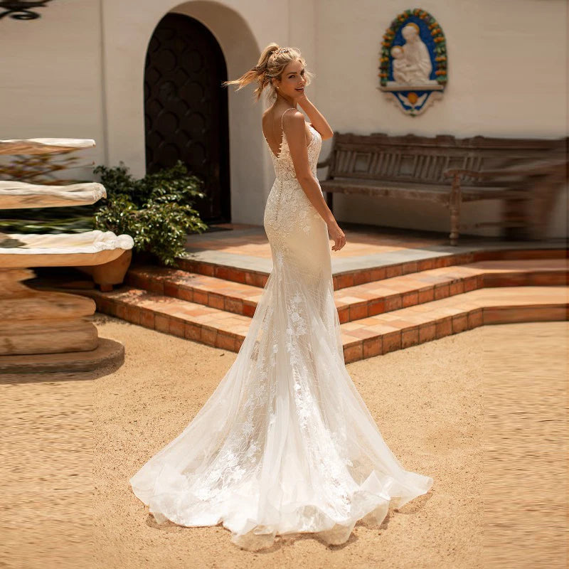 Vintage Mermaid Lace Wedding Dresses V Neck Sleeveless Open Back Spaghetti Straps Bridal Custom Made Robe De Mariee Customize
