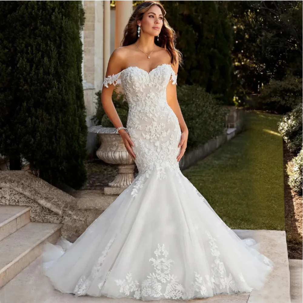 Vintage Off the Shoulder Mermaid Wedding Bridal Dresses Lace Appliques with Beaded Chapel Train Custom Made 2024 Robe de Mariee