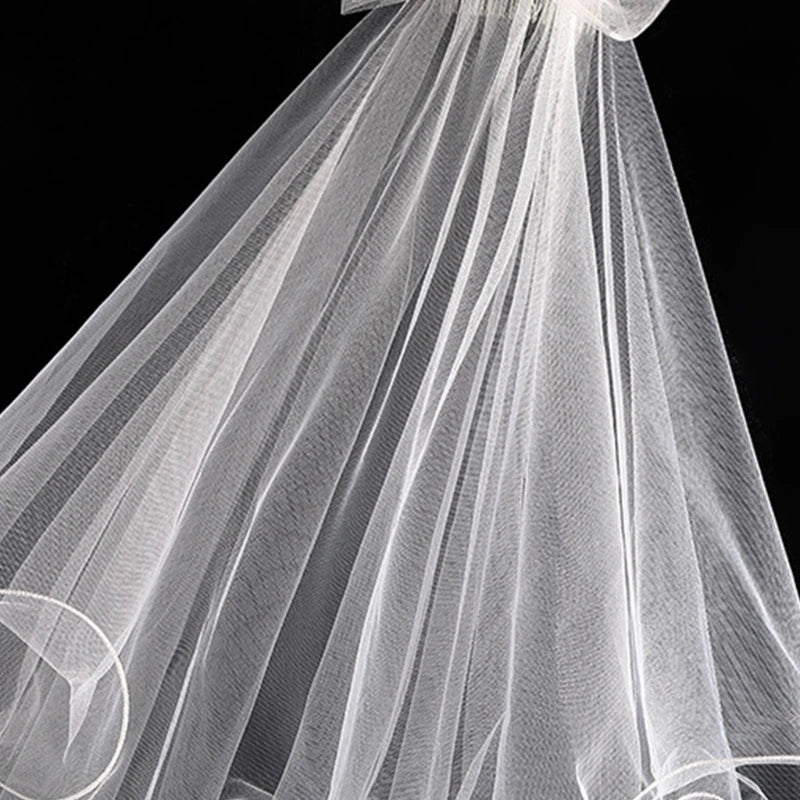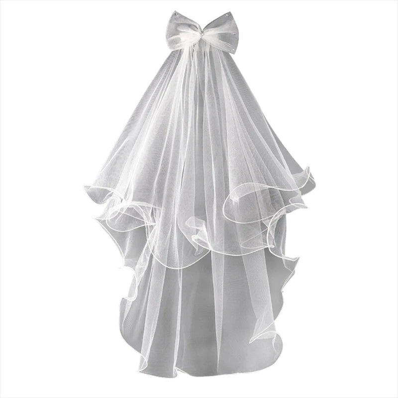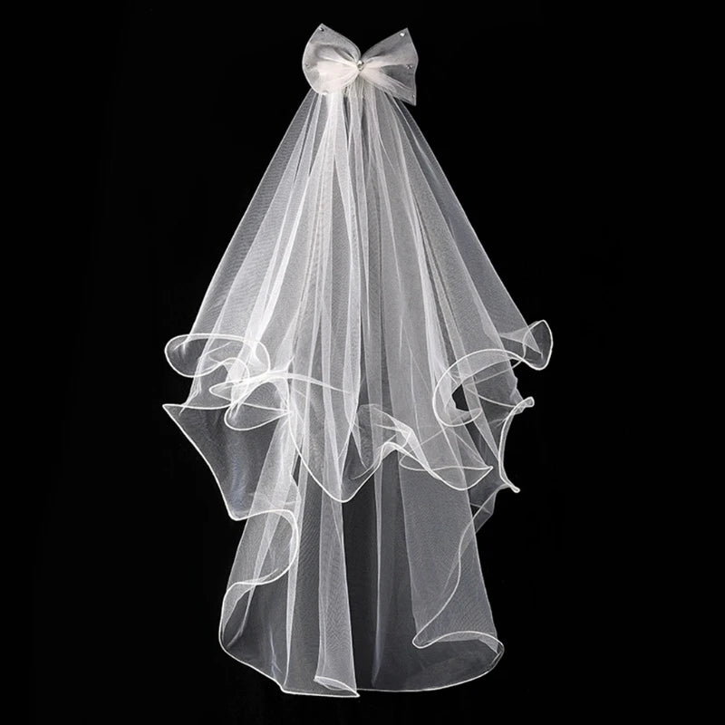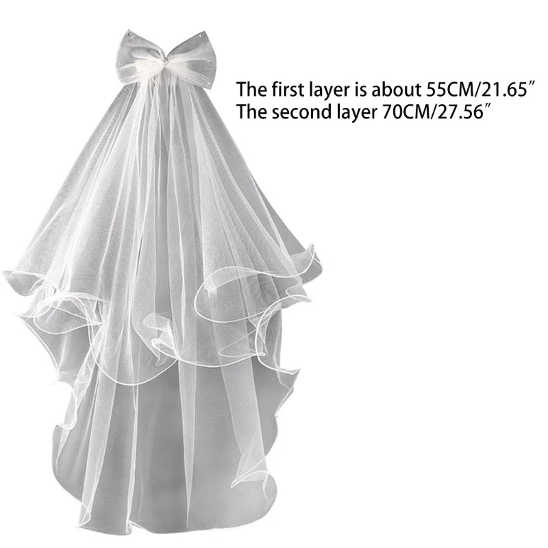Wedding Veil with Comb for Kids Wedding Hair Accessories for Girls 2 Tier Bow Embellishment Props for Photo Taking