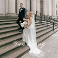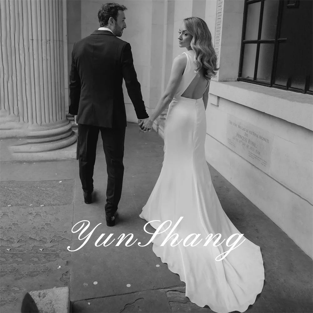 Yunshang Elegant Mermaid Wedding Dress Sleeveless Open Back Pleat Scoop Collar Split Bridal Gown Sweep Train Vestido De Novia