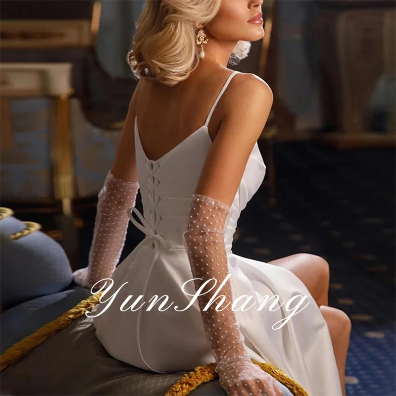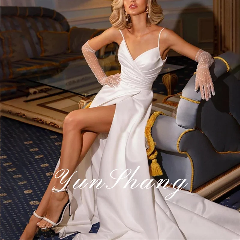 Yunshang Elegant Mermaid Wedding Dresses Women Open Back V-Neck Split Spaghetti Straps Bridal Gown Sweep Train Vestidos De Novia