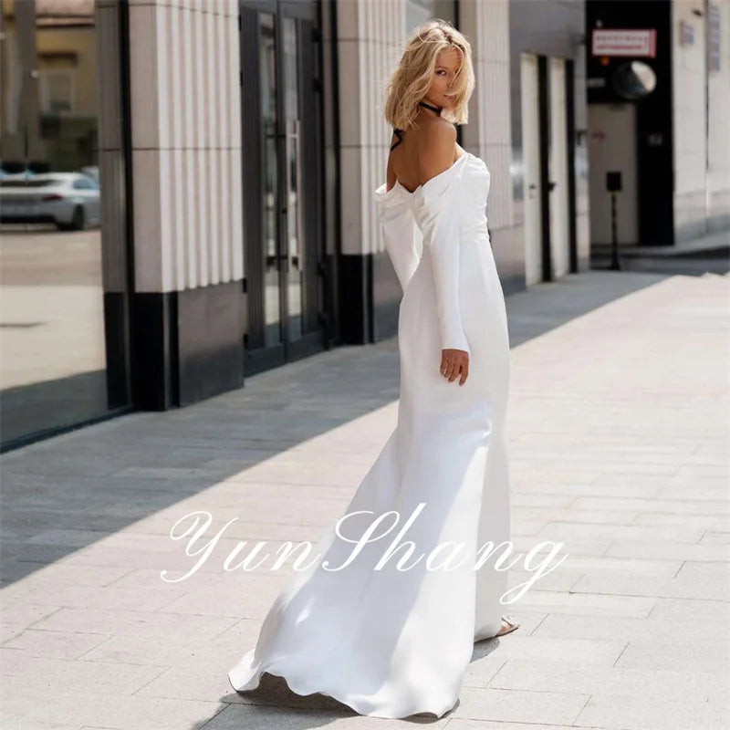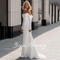 Yunshang Simple Wedding Dresses Women Mermaid Open Back Long Sleeve Pleat Strapless Bridal Gowns Sweep Train Vestidos De Novia