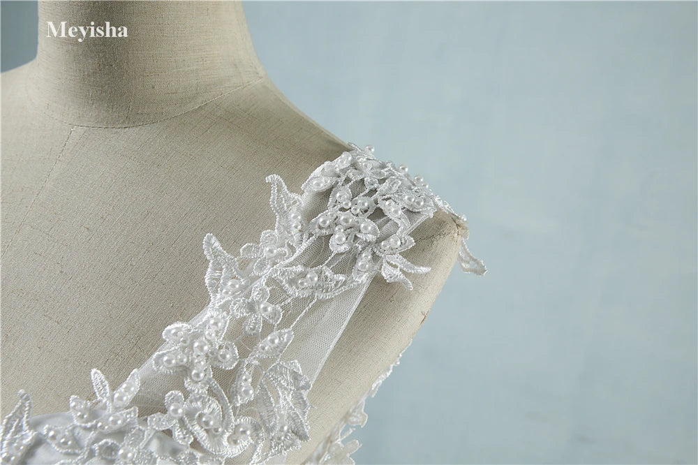 ZJ9076 Ball Gown Spaghetti Straps White Ivory Tulle Pearls Bridal Dress For Wedding Dresses 2023 Marriage Customer Made